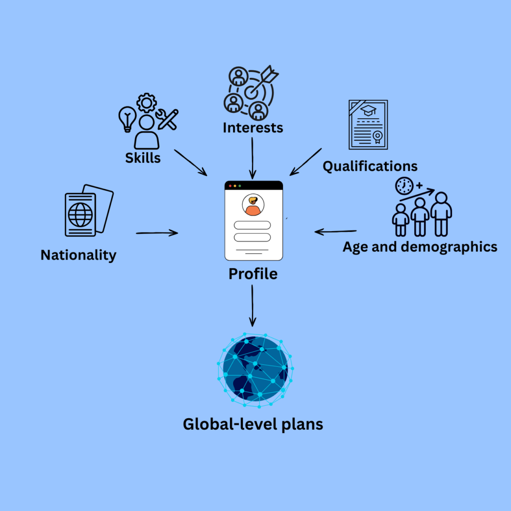 Based on a 3 minute questionnaire about your goals, age, sex, education, skills and nationality,
